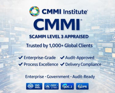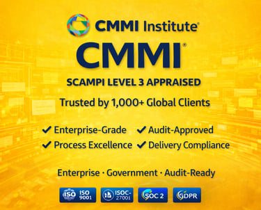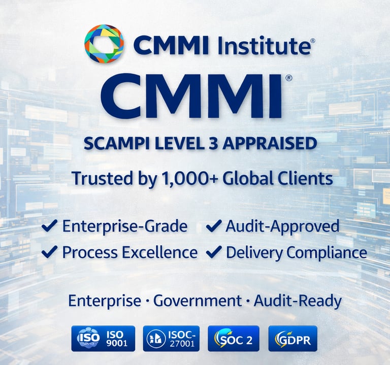 CMMI Level 3 certified expertise in development and services.